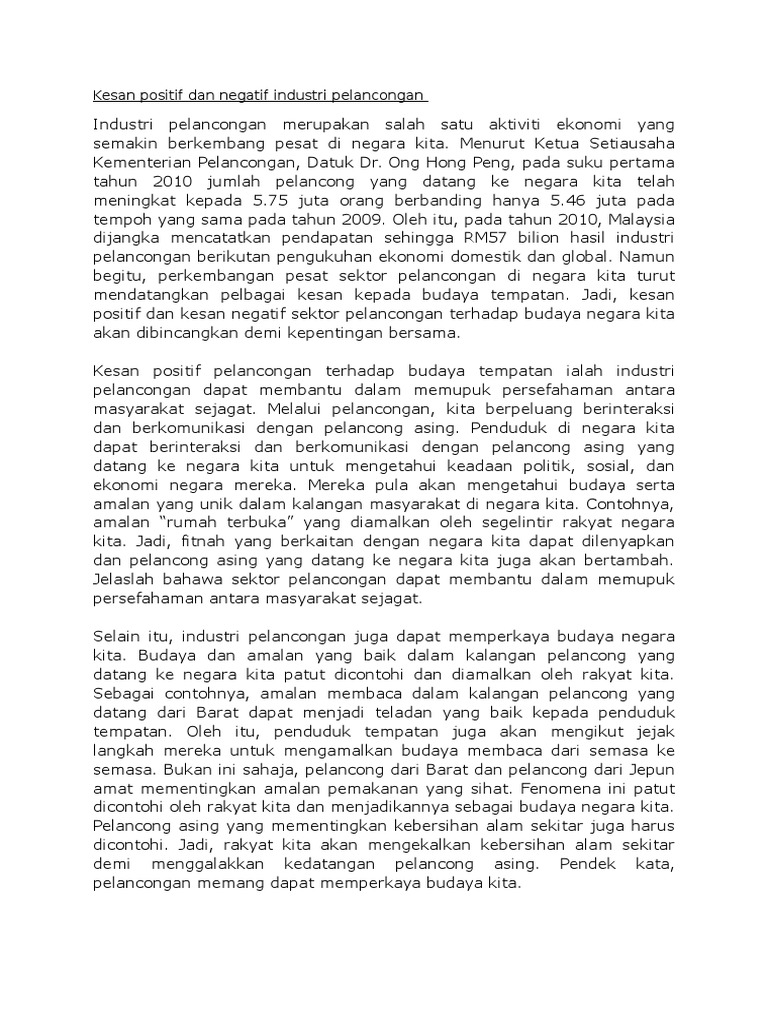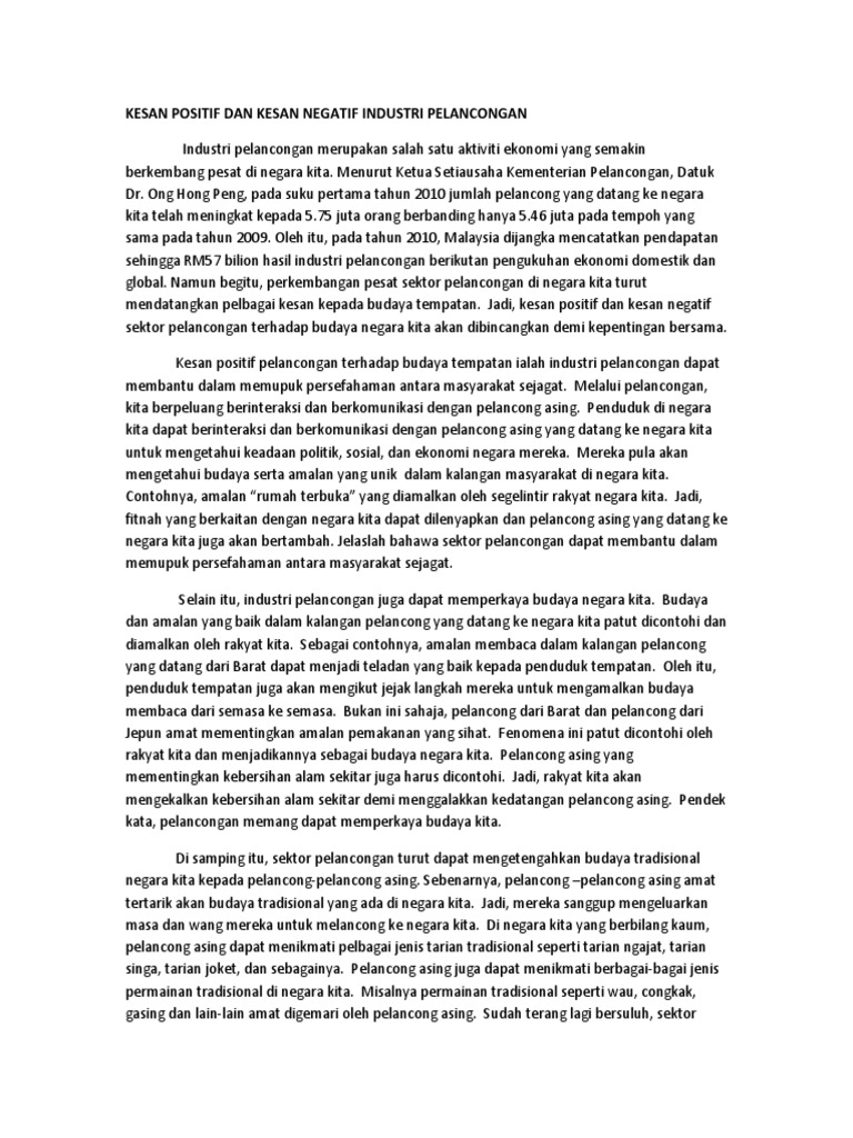 Karangan Tentang Kesan Positif Dan Negatif Industri Pelancongan. Contoh Karangan Kepentingan sektor industri pelancongan kepada rakyat dan negara Pendahuluan.
